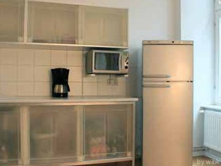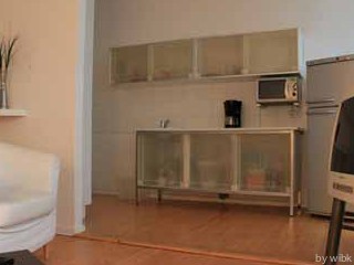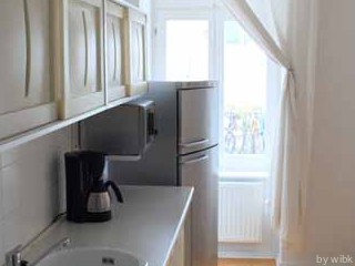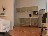 Die Küche liegt in offener Weise zum Wohnraum und bietet neben Geschirr und Besteck einen